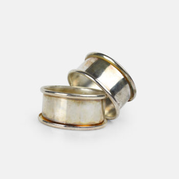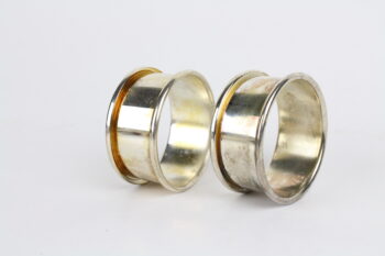 Fyra vita servetter i tyg med maskinbroderade röda kanter och jordgubbsmotiv i ena hörnet. Säljes tillsammans.