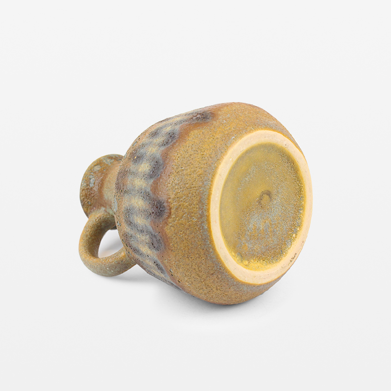 Brun vas med öra. Höjd: 14 cm. Diameter: 12 cm. Bruksslitage: små skador på den målade utan.