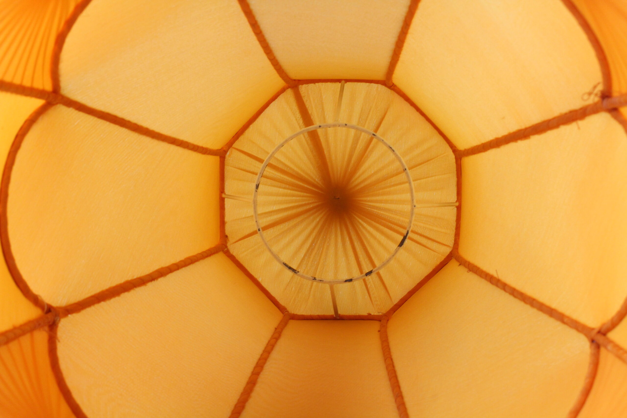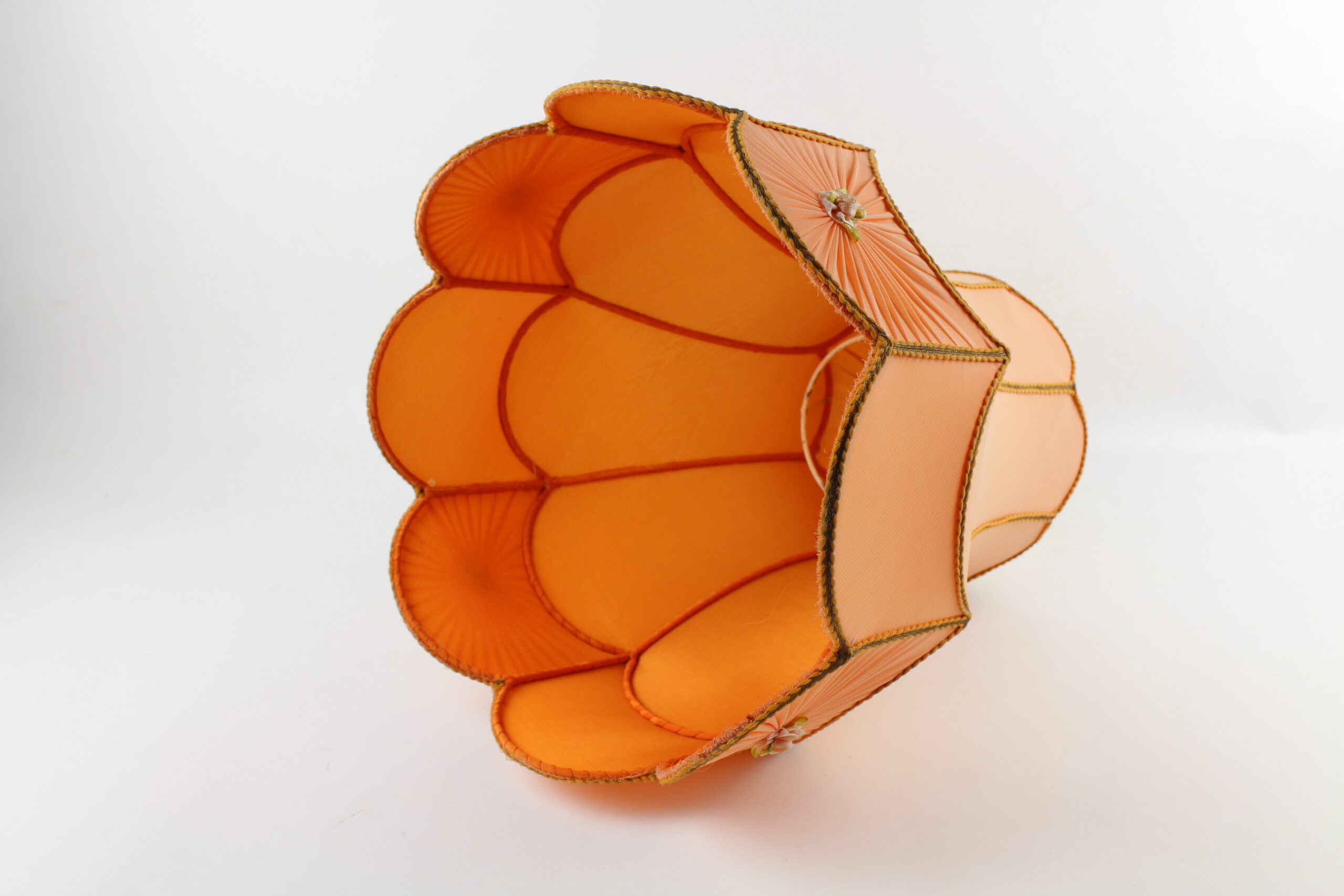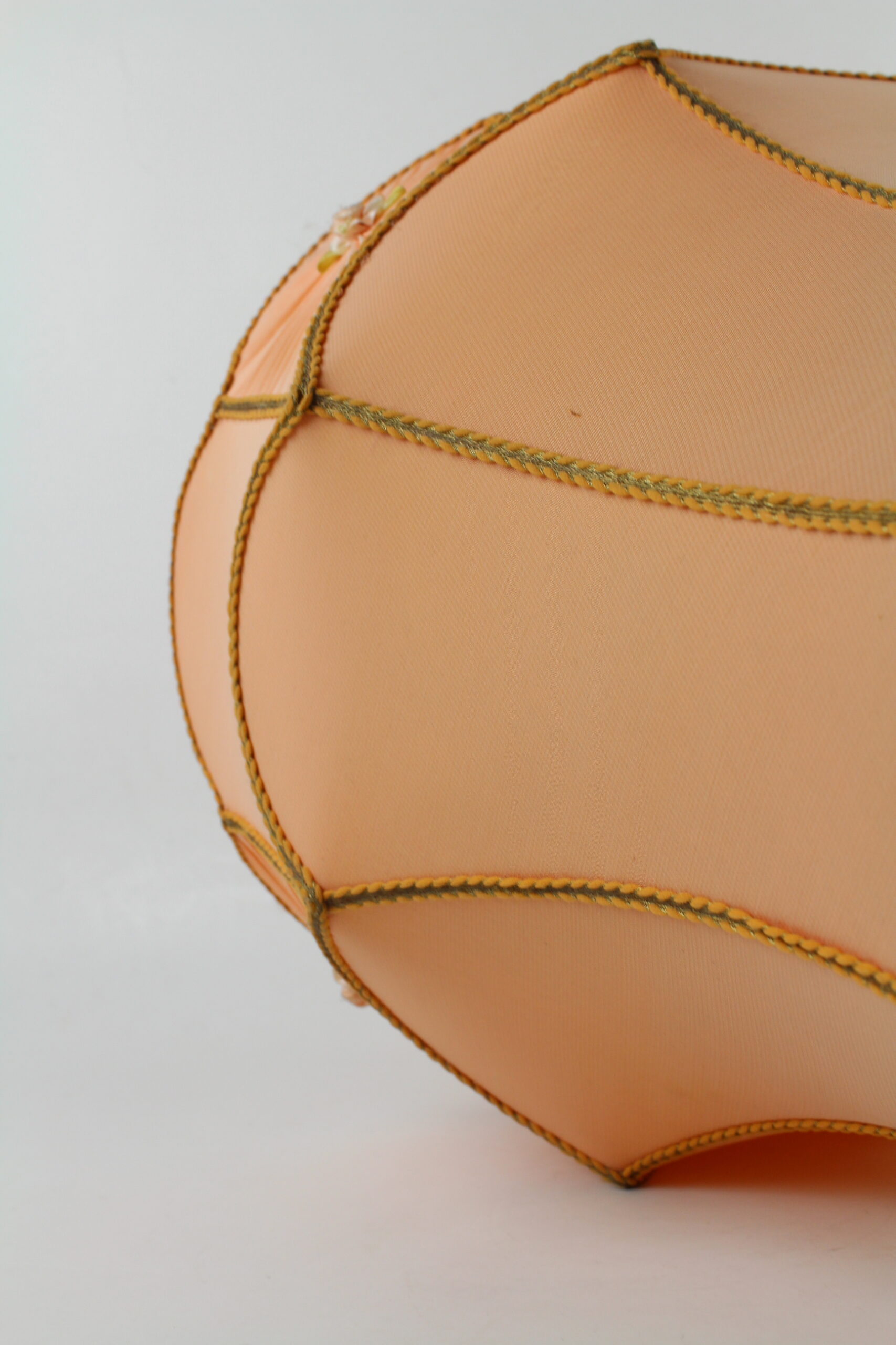 Ljusrosa lampskärm med dekorativa små tygrosor.