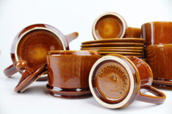 Servisen innehåller 12 assietter, 12 fat, 10 koppar, 1 mjölkkanna och 1 sockerskål.